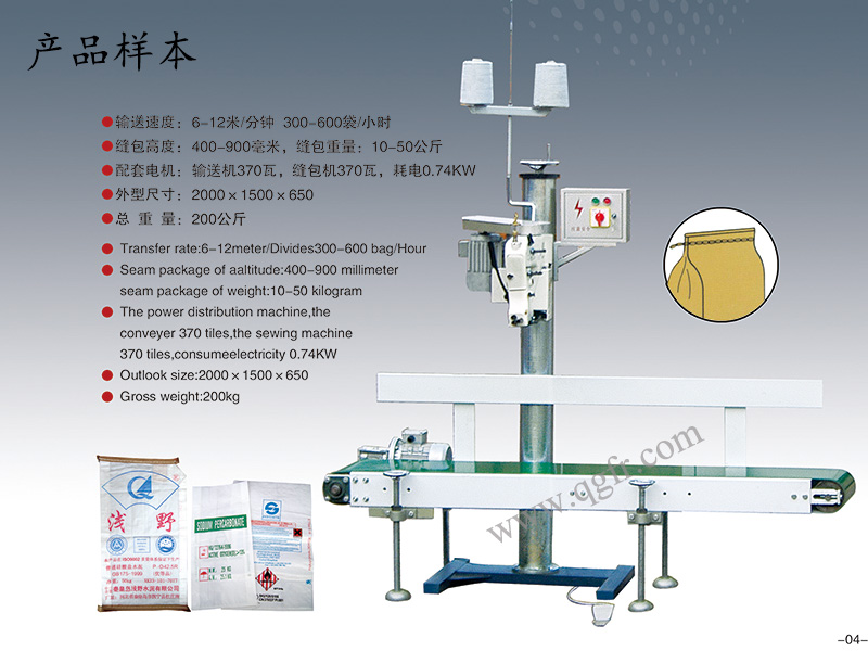 1.速 度: 9米/分鐘 200-400袋/小時(shí)。(若配備調速電機則縫包速度為6-12米/分鐘,300-600袋/小時(shí));
