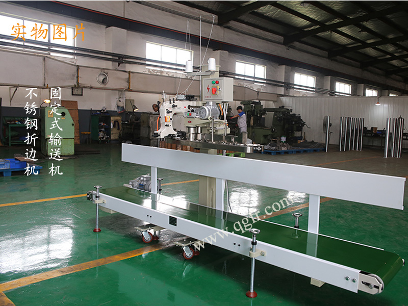 主圖照片為LFS3000皮帶輸送機+GK35-6A自動(dòng)縫包機+QG6900SS不銹鋼折邊機的組合形式。其他組合形式請查看圖集。